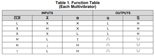 | Logic IC | TI | SN74LV123AD | https://www.ti.com/lit/ds/symlink/sn74lv123a.pdf |