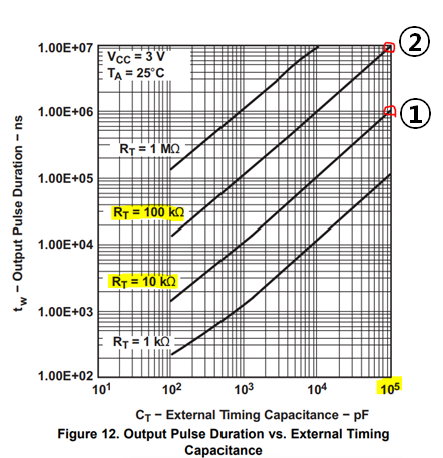 - 따라서 RC 시정수를 늘려 tw값을 10ms 이상으로 설정하려면, 2번 혹은 4번과 같이 R, C를 변경해야함