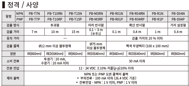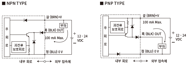아래 이미지와 같이 NPN 또는 PNP 출력을 선택하여 제품을 선정할 수 있다.