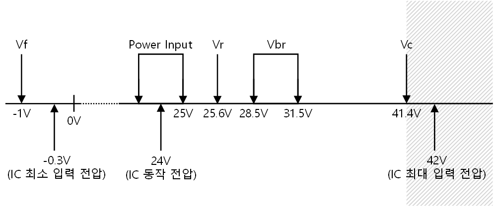 따라서 IC Input의 최대 입력 전압이 VBR보다 크게 설계를 해야 상시에 전원이 인가될 수 있다. (최대Vic < Vbr)